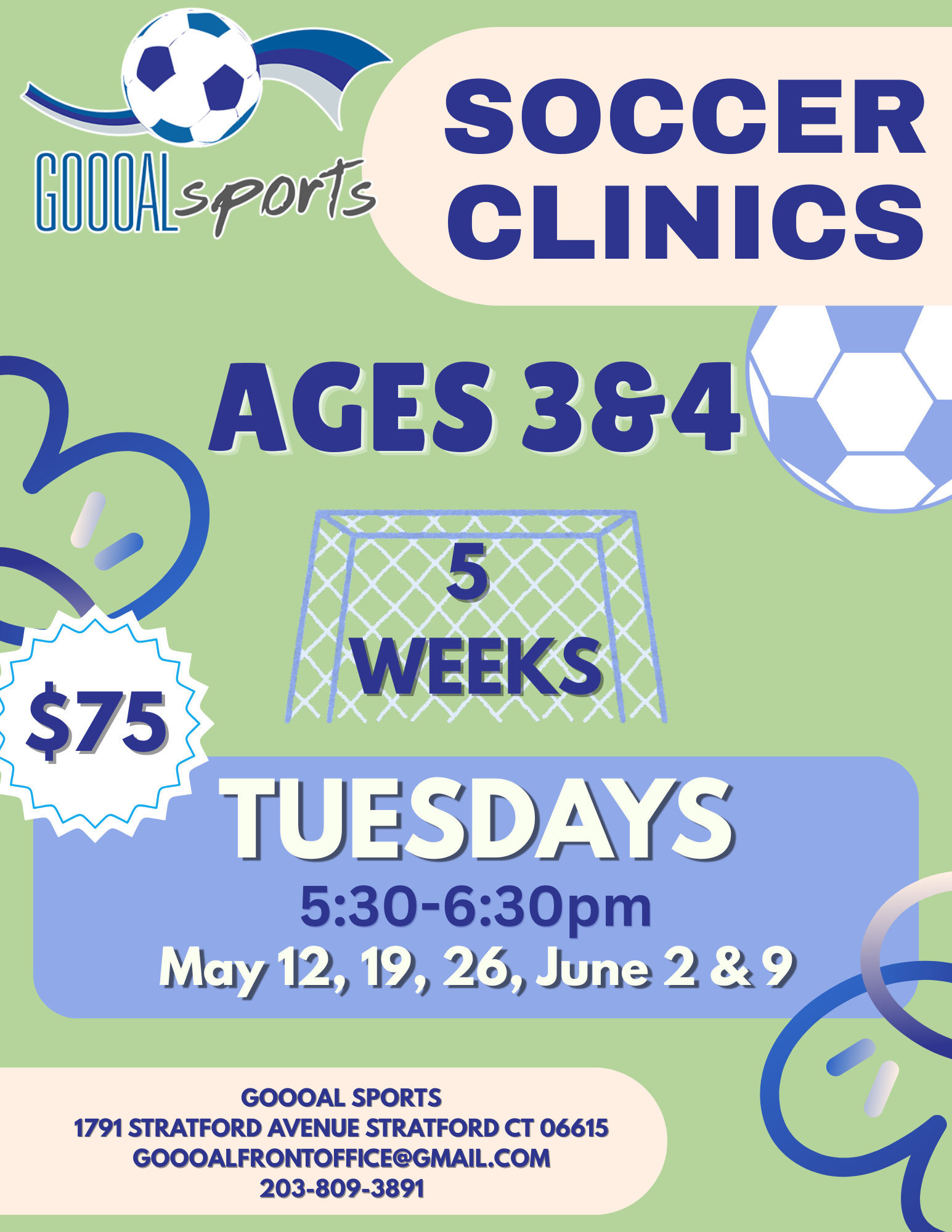 Give your little one a fun and positive introduction to soccer! Ages 3 & 4 Soccer Clinics are designed specifically for our youngest players, focusing on building basic soccer skills through games, movement with the ball, and teamwork activities.